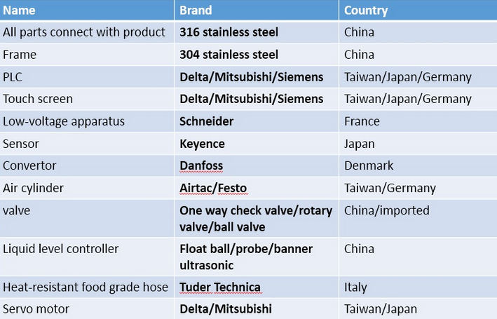 3. ສ່ວນປະກອບທັງ ໝົດ ທີ່ຕິດຕໍ່ພົວພັນກັບຜະລິດຕະພັນແມ່ນຜະລິດຈາກເຫລັກສະແຕນເລດ 316 ລິດທີ່ ນຳ ເຂົ້າ, ແລະປຸງແຕ່ງໂດຍເຄື່ອງ CNC.